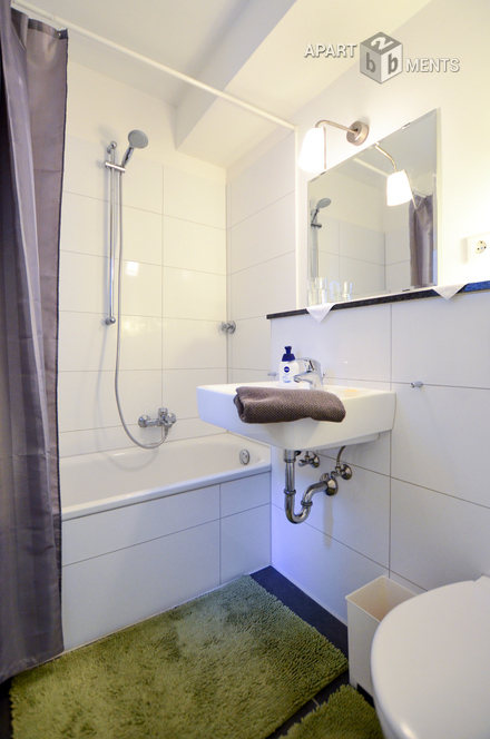 Das Badezimmer hat Tageslicht und ist mit einer Badewanne und WC ausgestattet.